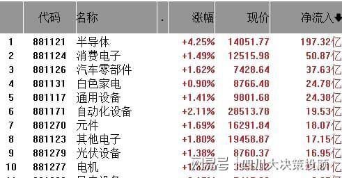 从行业板块资金净流入来看,半导体、消费电子、汽车零部件净流入排名前三,白色家电、通用设备、自动化设备等紧随其后。