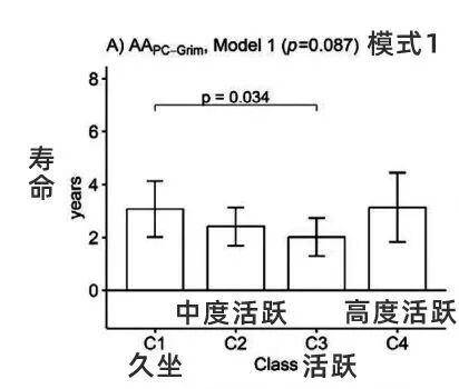 基于长期休闲体育活动类别的生物衰老均值差异。研究截图