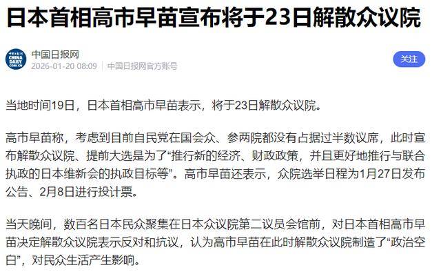 就在1月23日距离日本众议院可能解散只差一步的前夜,政坛突然翻盘。