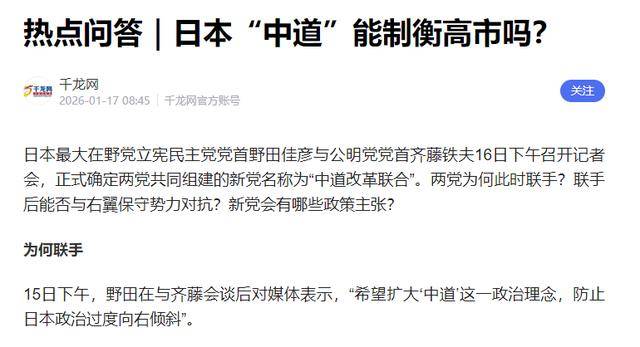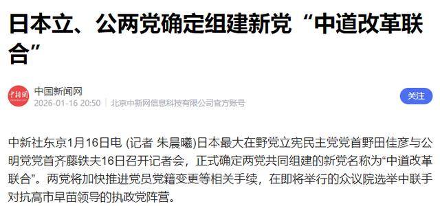 这次结盟速度之快也能看出公明党的决心——和立宪民主党不到两天就谈妥了,还明确了分工:小选区合作推候选人,比例席位优先公明党。这种精准的利益分配,说明公明党早就有了退路,只是在等一个合适的时机。而1月23日这个众议院解散前的关键节点,无疑是最佳时机,既能给高市致命一击,也能最大程度提升自己在新联盟中的话语权。