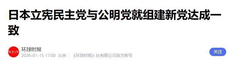 1.《日本立宪民主党与公明党就组建新党达成一致》2026-01-15 17:00 | 来源:环球时报