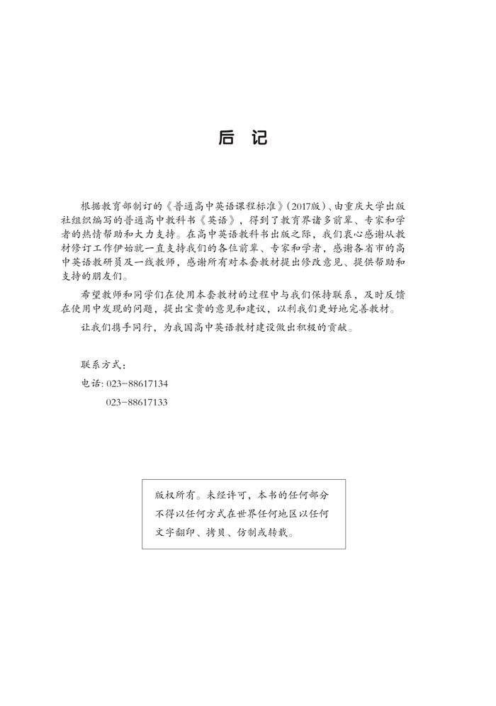 重庆大学版高中英语必修三电子课本在线阅读
