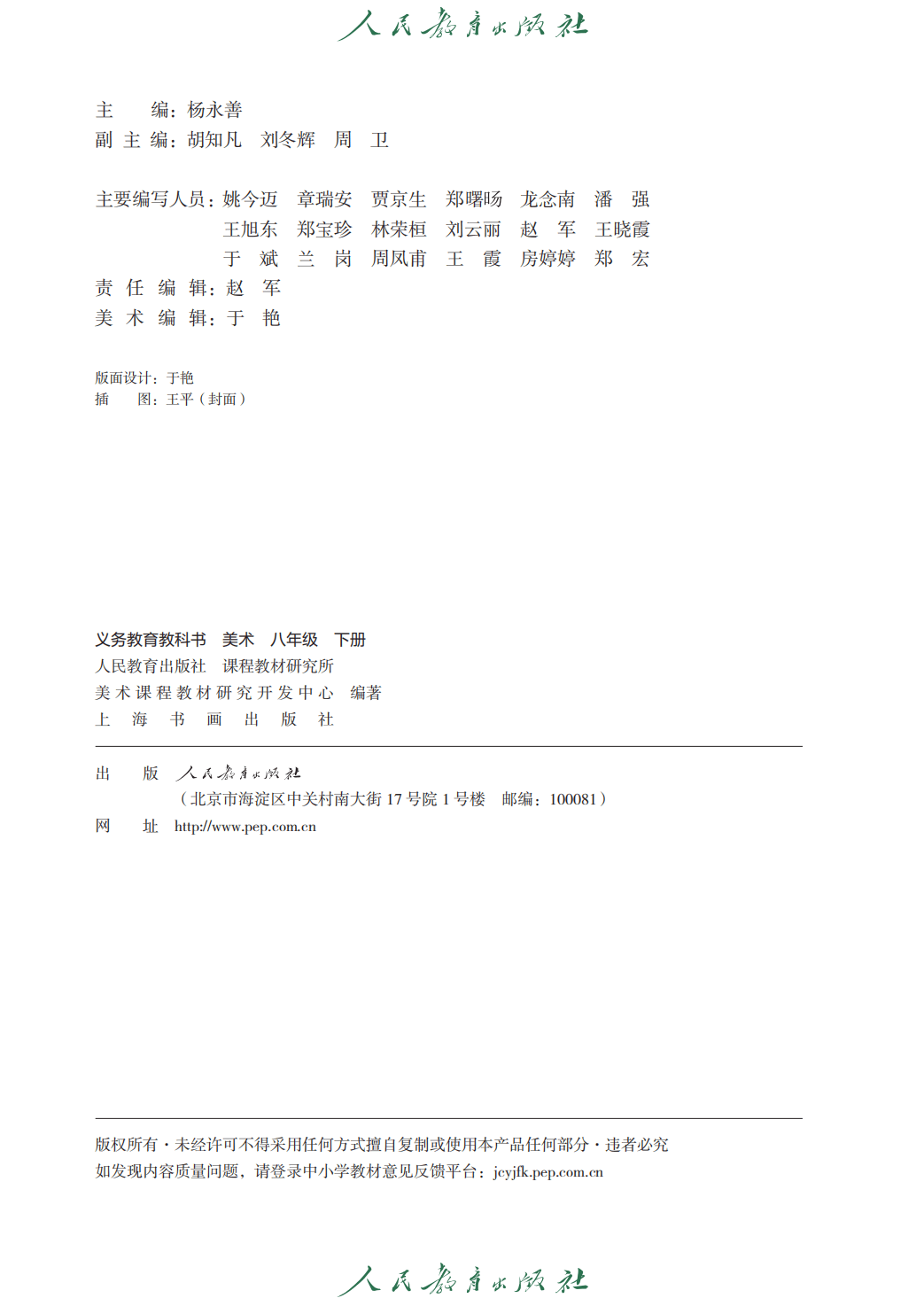 2026人教版八年级美术下册电子课本(新教材高清PDF版)就为您介绍到这里,资源来源于网络,仅为学习交流之目的进行分享,其版权均归原出版社及作者所有。