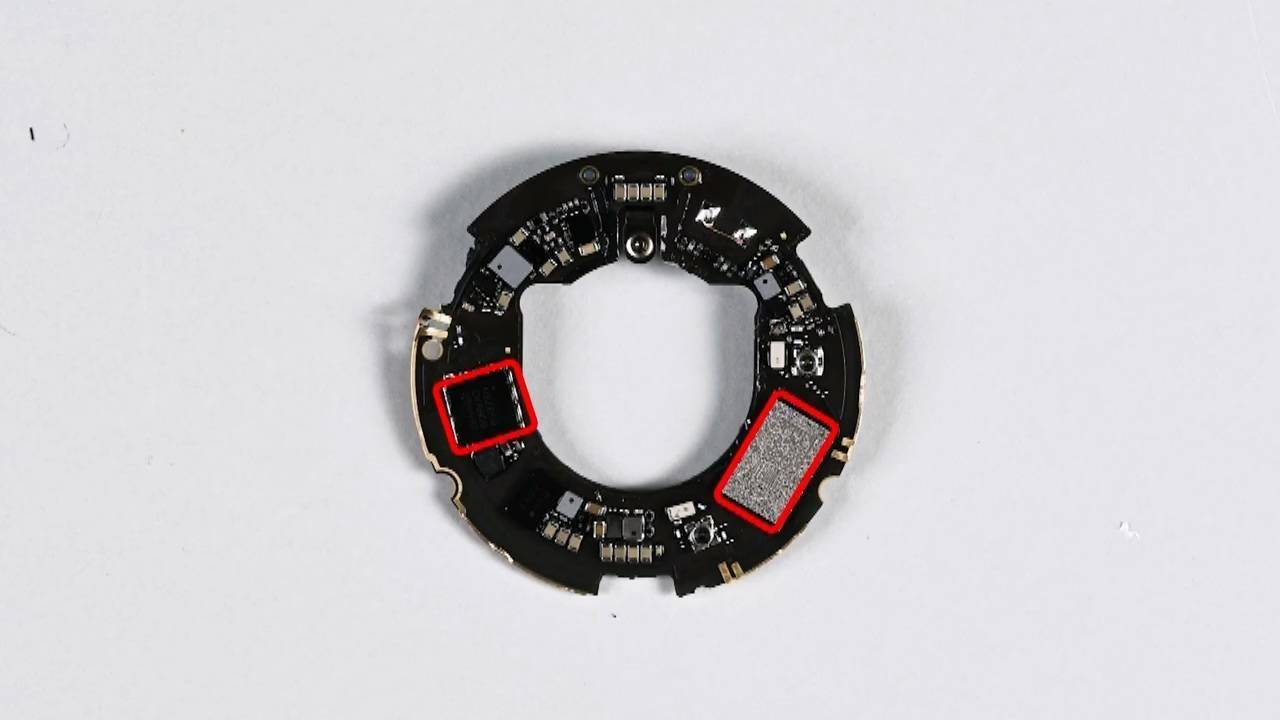 抛开安全隐患,AirTag 2 在核心硬件上确实进行了显著升级。iFixit 展示了 PCB 板背面的详细结构,其中最核心的组件是一颗升级版 SoC(片上系统),负责处理蓝牙和 NFC 功能。
