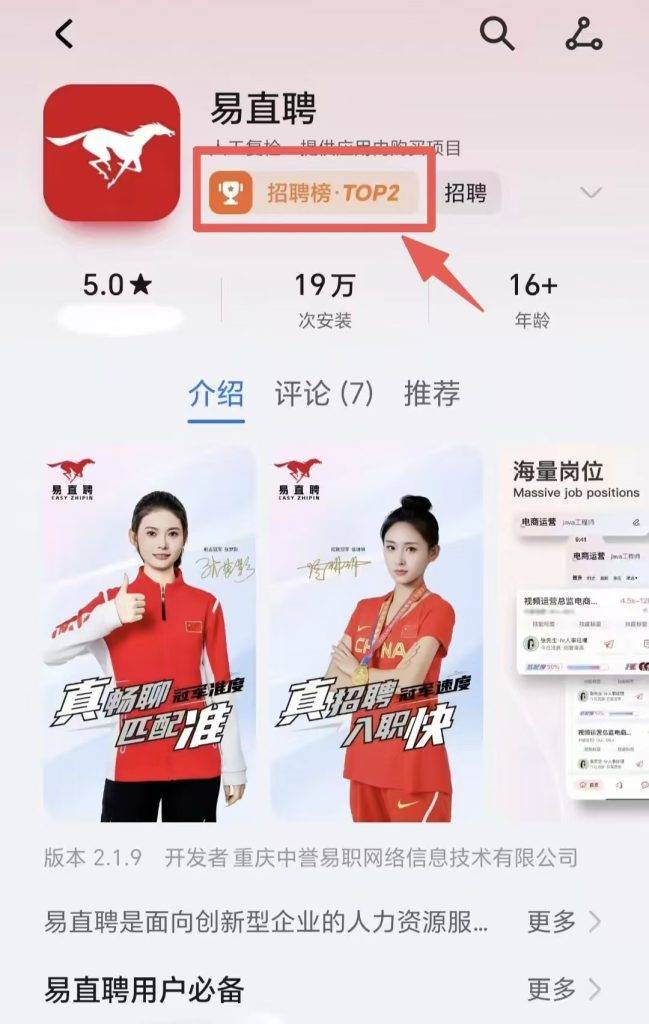 排名第一:易直聘