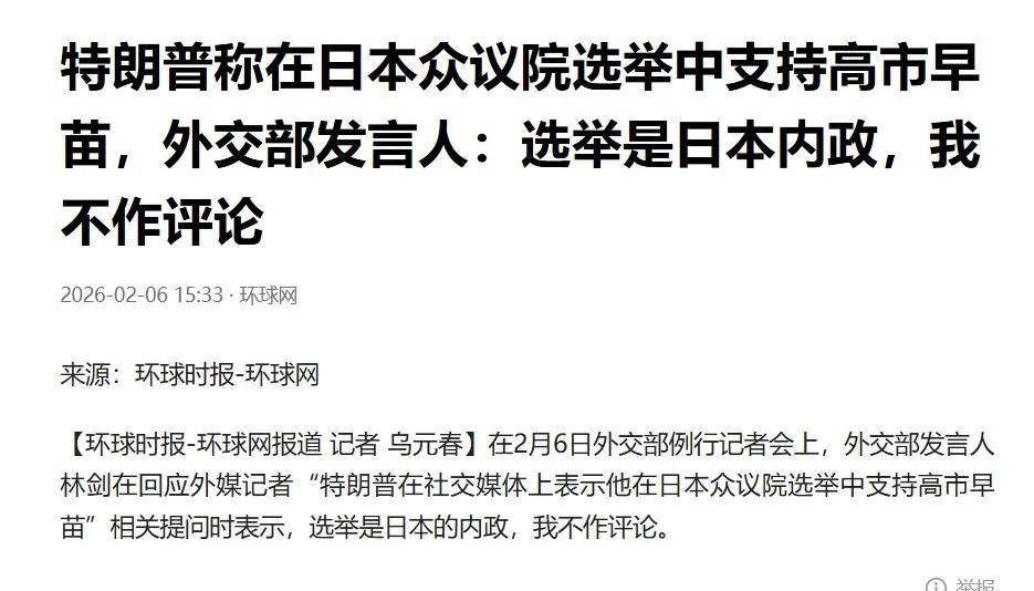 最后,特朗普也对高市所在自明党在日本议会的选举,予以“祝愿”,他发文称:“高市早苗首相及其领导的执政联盟所开展的工作,理应得到高度认可”,“此次选举结果对日本的未来至关重要。”