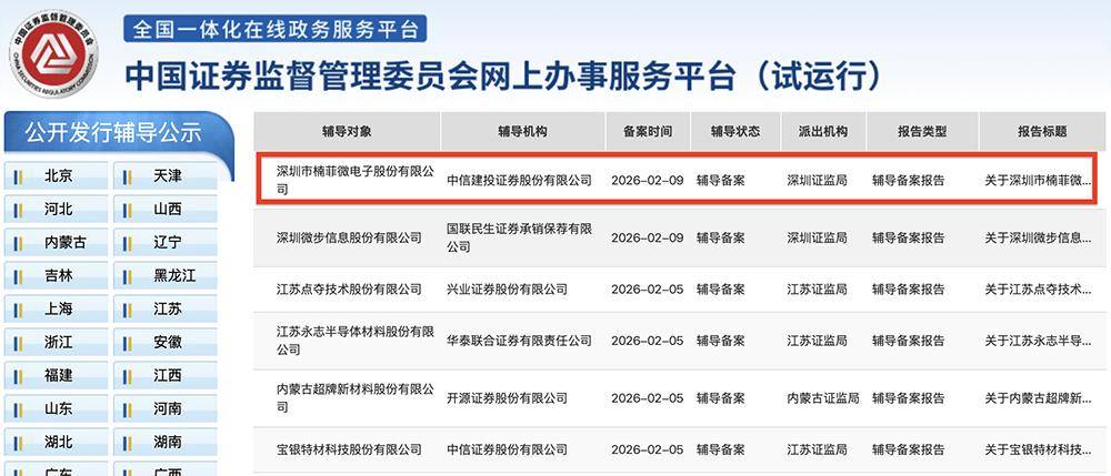 芯东西2月10日报道,2月9日,证监会官网披露,广东深圳网络互联芯片企业楠菲微电子在深圳证监局办理上市辅导备案登记,启动A股IPO进程,辅导机构是中信建投证券。