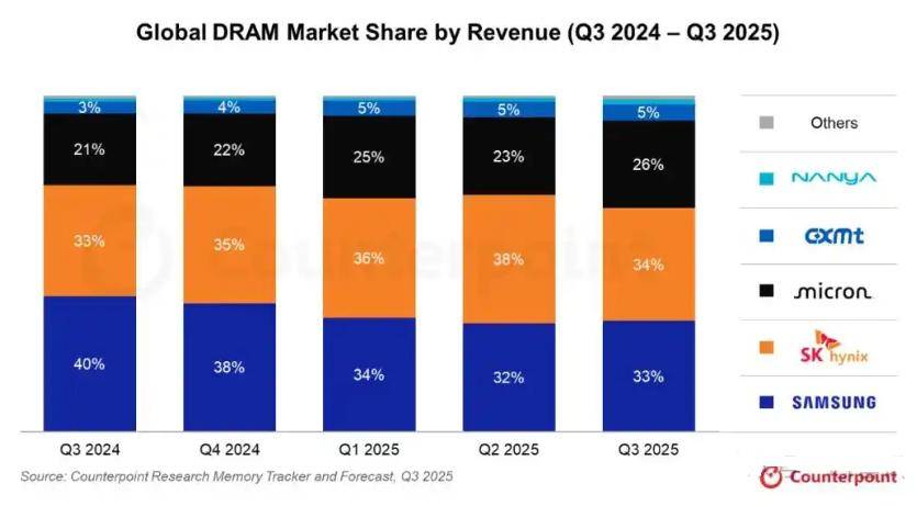 当然,主力是三星、SK海力士、美光这三家,占了92%左右的份额,长鑫再占了5%左右的份额,另外的加起来,也不过3%不到。
