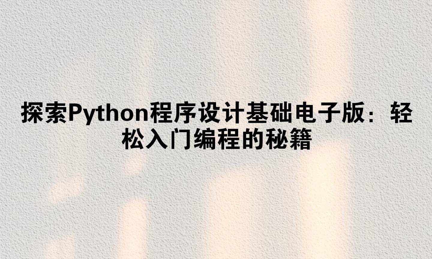 大家好!今天咱们来聊聊一个超实用的话题——Python程序设计基础电子版。如果你对编程感兴趣,或者想转行IT,但觉得学习资源太难找,那这篇文章就是为你准备的。Python作为当下最火的编程语言之一,它的基础学习其实并不难,尤其是有了电子版资源后,随时随地都能学。想象一下,躺在沙发上用手机翻看电子书,或者在地铁里刷几页教程,是不是很酷?别担心,我会用最口语化的方式,带你一步步了解怎么搞定Python基础,甚至分享一个亲戚从零基础到就业的真实故事,说不定能给你一些启发哦!