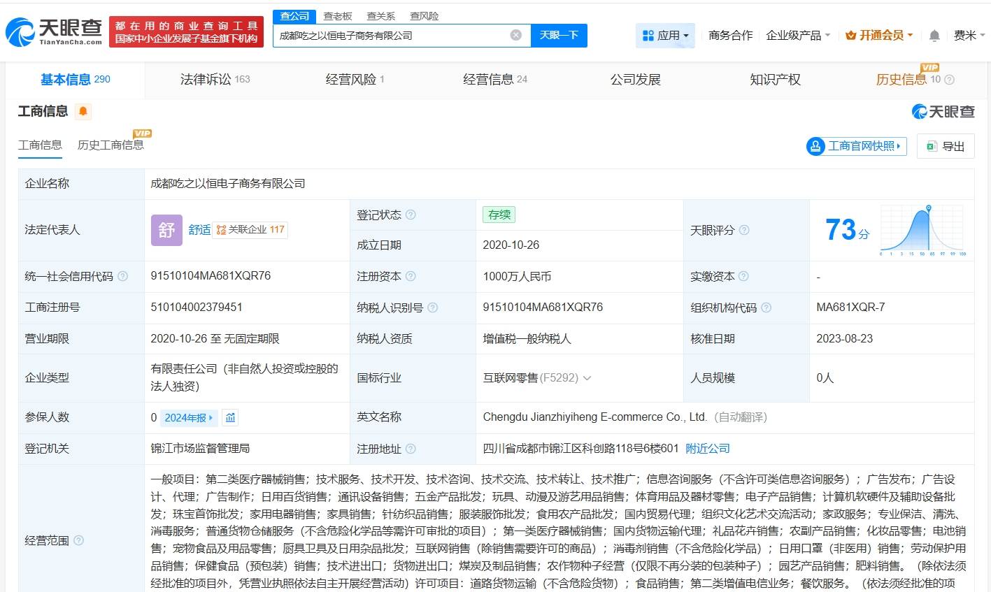 天眼查经营风险信息显示,近日,成都吃之以恒电子商务有限公司新增一则简易注销公告,公告期为1月27日至2月16日。
