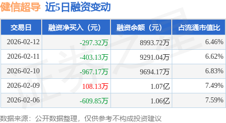 证券之星消息,2月12日,健信超导(688805)融资买入491.19万元,融资偿还788.51万元,融资净卖出297.32万元,融资余额8993.72万元。