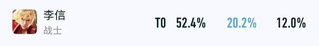 在全分段里,李信有着52.4%胜率+32.2%BP率,排在对抗路的第一位。