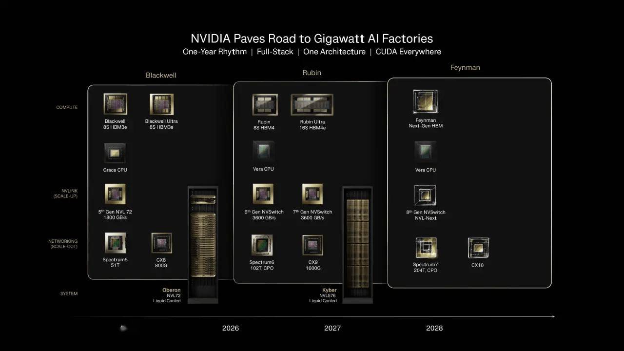 除了上述猜测,该媒体还指出英伟达或许会提前展示 Feynman 架构的原型,不过这种可能性偏低。该架构原计划于 2028 年接棒 Rubin,并已列入 2025 年的路线图。Feynman 架构预计将采用台积电 A16(1.6nm)工艺,并引入硅光子技术,利用光而非电进行数据传输,从而突破“摩尔定律”的物理限制。