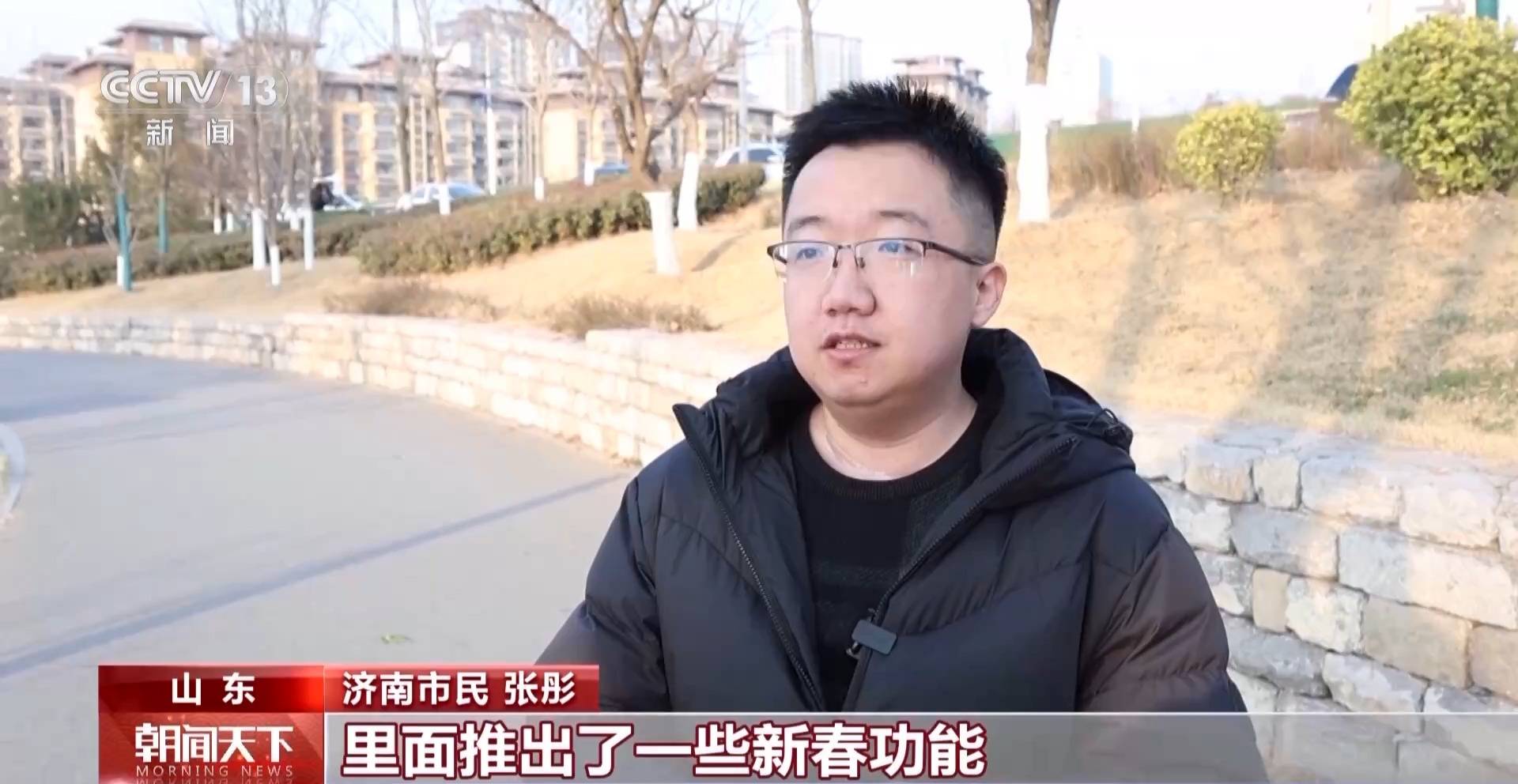 济南市民 张彤:里面推出了一些新春功能,同唱一首歌。你一句我一句,我觉得还挺有意思的。