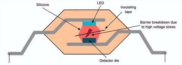 电容隔离器:电源故障引发输入 IC 处的 SiO₂电容烧毁,因单片集成工艺让电路与隔离屏障无物理隔离,故障能量直接传导至绝缘层,在特定应力测试下,电容隔离方案的绝缘屏障可能出现失效风险。