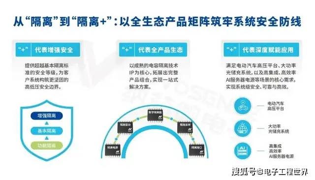 如今,纳芯微正在从“隔离”迈向“隔离+”,以全生态产品矩阵构筑系统安全防线。“+”不仅意味着超越基础隔离标准的安全保护,为客户系统打造更坚固的高低压屏障,也代表完整的产品生态——以成熟的电容隔离技术 IP 为核心,涵盖数字隔离器、隔离驱动、隔离采样、隔离接口和隔离电源,实现一站式解决方案,深度赋能大功率光储充系统等核心场景。