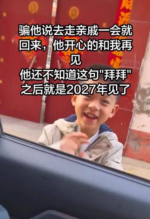 据了解,山东菏泽单县的母先生因工作调动,计划把7岁的儿子留在老家一年,返回北京时,母先生对儿子撒谎称走亲戚,孩子笑着挥手“拜拜”,并将记录的视频发布到网上。