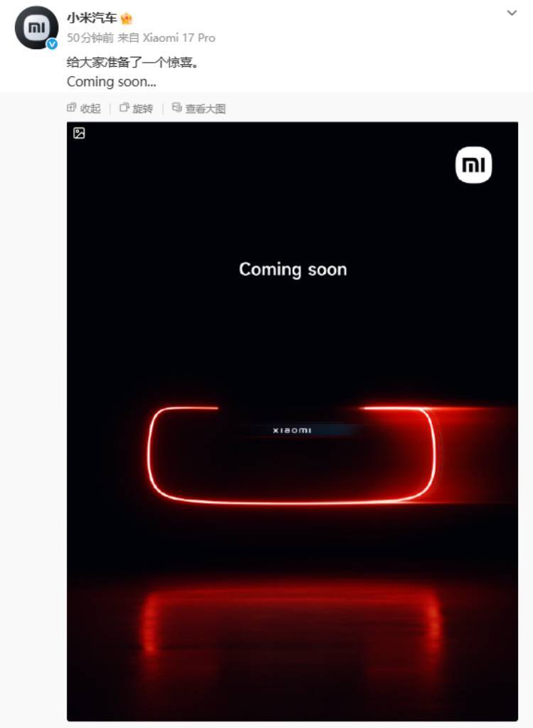 1. 小米汽车惊喜预告“Coming soon”,全新超跑街头亮相疑为MWC 2026造势