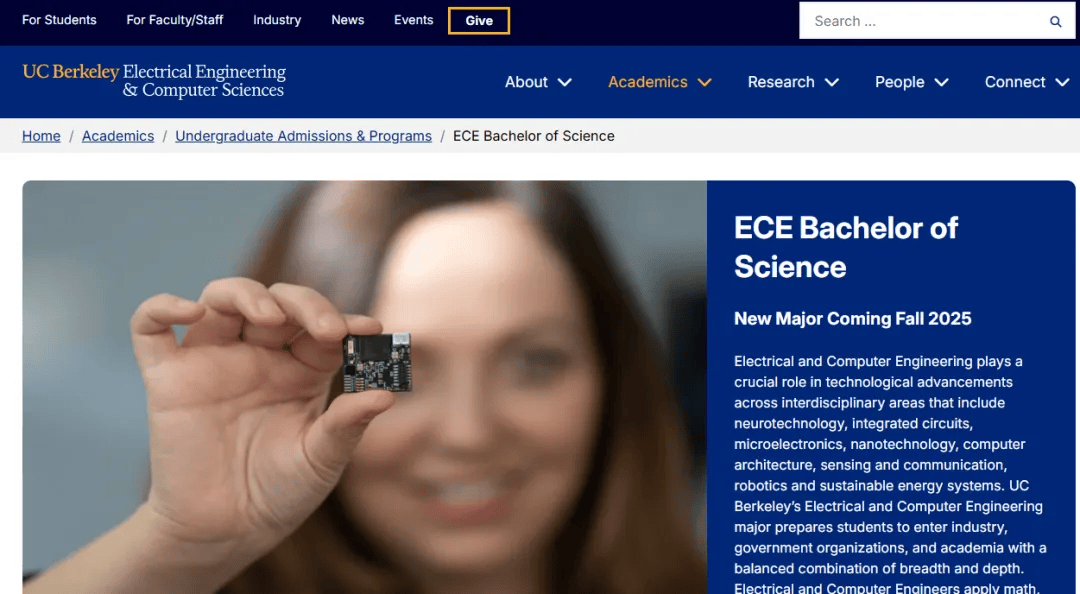 特点:今年伯克利新开的本科专业,由工程学院与王牌的电气工程与计算机科学系(EECS) “强强联合”。课程直击前沿领域:除了数学、物理等基础课,还深入讲解集成电路、纳米技术、信号处理、计算机架构等核心内容,毕业后可对接芯片、AI、通信等高薪行业。