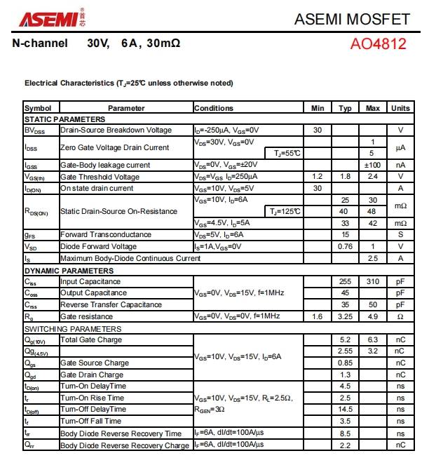 AO4812-ASEMI中低压MOS新标杆AO4812