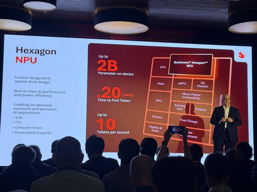 与前代平台相比,其CPU单线程性能提升最高可达5倍,GPU最高FPS性能提升可多至7倍,并提供多达10TOPS的AI算力、可支持在设备端运行20亿参数的AI模型。