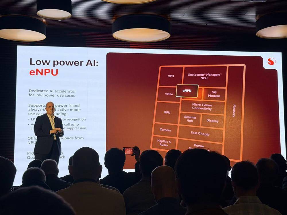 其中,eNPU是高通显著增强面向低功耗用例的专用AI加速器,能帮Hexagon和MCU分担AI工作负载,可通过高通AI Runtime(QNN)编程。