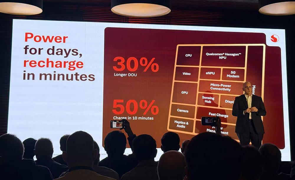 续航也是一大亮点,骁龙可穿戴平台至尊版可实现日常使用时长(DOU)延长30%、10分钟充电约50%。