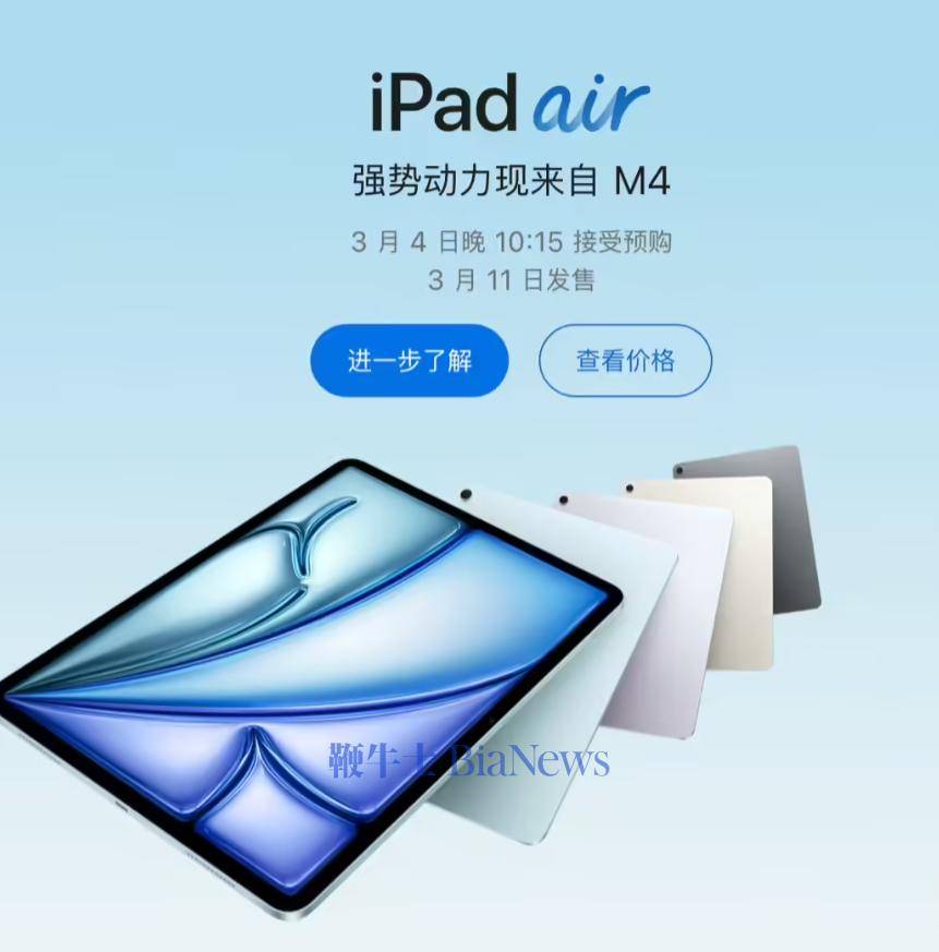 今天,苹果公司发布了搭载 M4 芯片的全新 iPad Air。