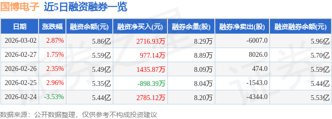 国博电子融资融券信息显示,融资方面,当日融资买入1.68亿元,融资偿还1.4亿元,融资净买入2716.93万元,连续3日净买入累计5129.94万元。融券方面,融券卖出2093.0股,融券偿还8100.0股,融券余量8.29万股,融券余额1049.05万元。融资融券余额5.96亿元。