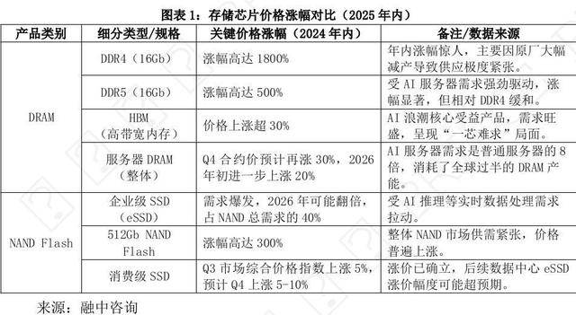 据官方发文称,2025年9月至今,受需求“爆发式”增长、产能“断崖式”紧缺等因素影响,全球存储器市场缺口扩大,存储芯片价格持续上涨,近1个月多以来,涨幅呈现扩大态势,建议关注存储芯片对下游价格的影响。这意味着存储市场格局的根本性逆转。