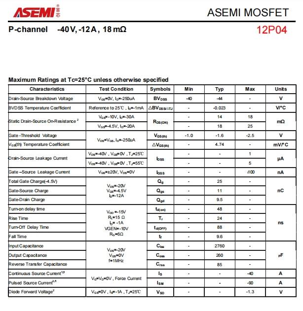 ASE12P04-ASEMI中低压MOS的「场景适配王者」