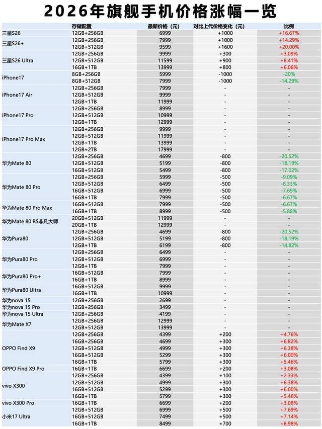 当前,手机行业正面临前所未有的成本压力。TrendForce集邦咨询最新数据显示,近三个月手机存储芯片现货价格累计涨幅超过300%,全行业被迫进入提价周期。有媒体报道,国内主流手机品牌均已完成涨价方案,OPPO、一加、vivo、iQOO、小米、荣耀等主流品牌老款机型售价或有上调,3月之后发布的新品,涨价幅度或将明显扩大。