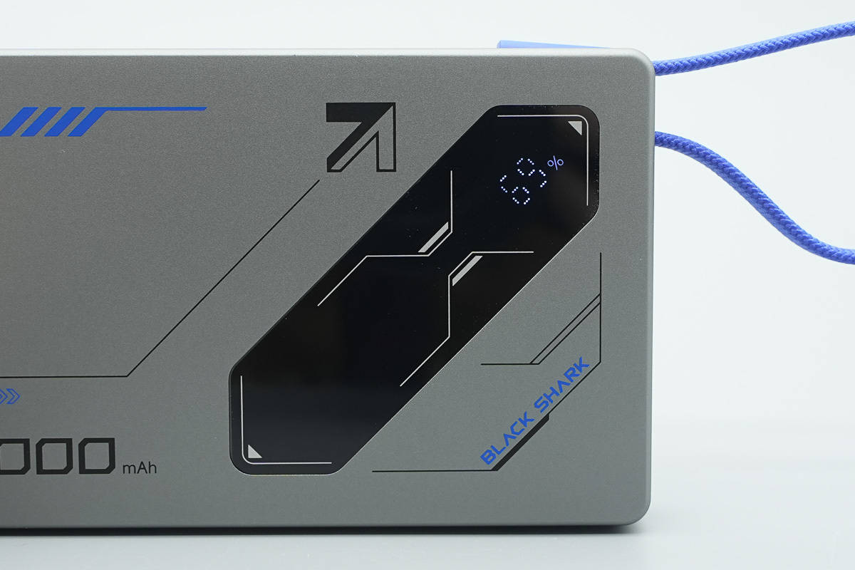 黑鲨刀锋2 22.5W自带线磁吸移动电源在外观设计上延续了品牌一贯的电竞风格,机身采用扁平卡片式造型,整体厚度控制不错,搭配隐藏式数显、自带线收纳结构以及磁吸设计,实用性、颜值以及便携性方面都非常不错。