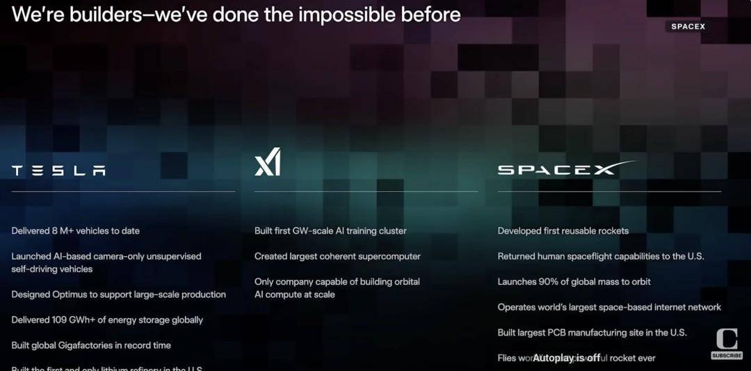 马斯克的演讲不到9分钟,主要内容是未来公司规划以及实现路径,听起来更像整个人类的未来愿景,他提到“太空轨道数据中心”、“不同阶段的能源需求”以及“迈向多行星文明”……