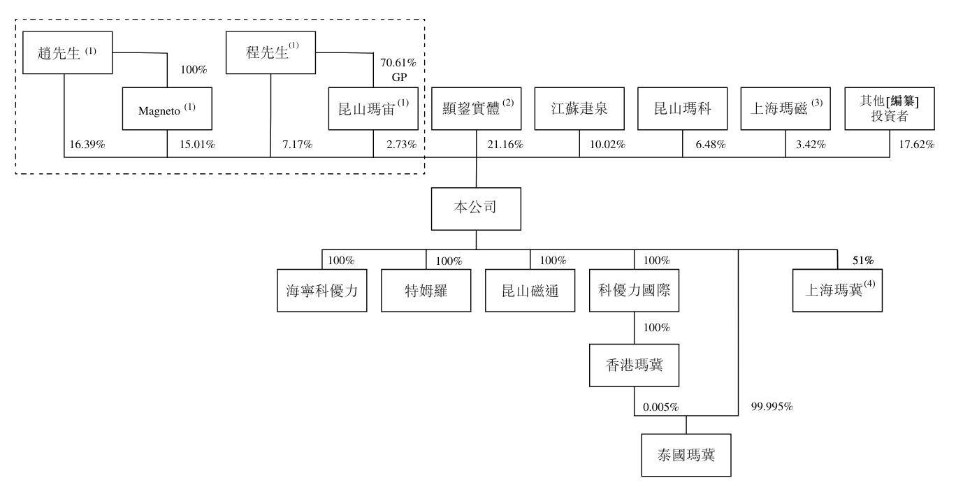 IPO前,赵宜泰直接持股为16.39%,程彧倞直接持股为7.17%,赵宜泰通过Magneto持股为15.01%,程彧倞持有70.61%份额的昆山玛宙持股为2.73%,控股股东一共持股为41.3%。