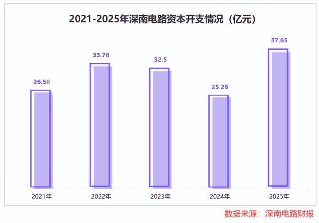 2025年,深南电路经营性现金流净额达38.38亿元,从2021年的23.42亿元稳步增长。现金流与净利润的匹配度很高,说明公司的利润是“真金白银”,而不是“账面富贵”。