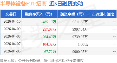 证券之星消息,4月10日,半导体设备ETF招商(561980)融资买入612.12万元,融资偿还1097.32万元,融资净卖出485.19万元,融资余额9511.85万元。