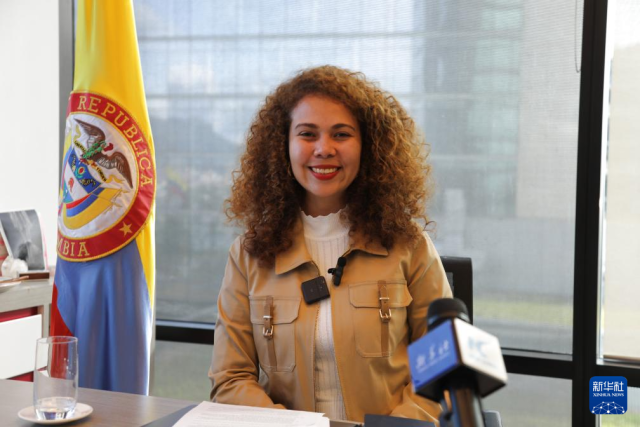 9月12日,哥伦比亚科学、技术和创新部部长耶塞尼娅·奥拉亚·雷克内在波哥大接受新华社记者专访。新华社记者 周盛平 摄